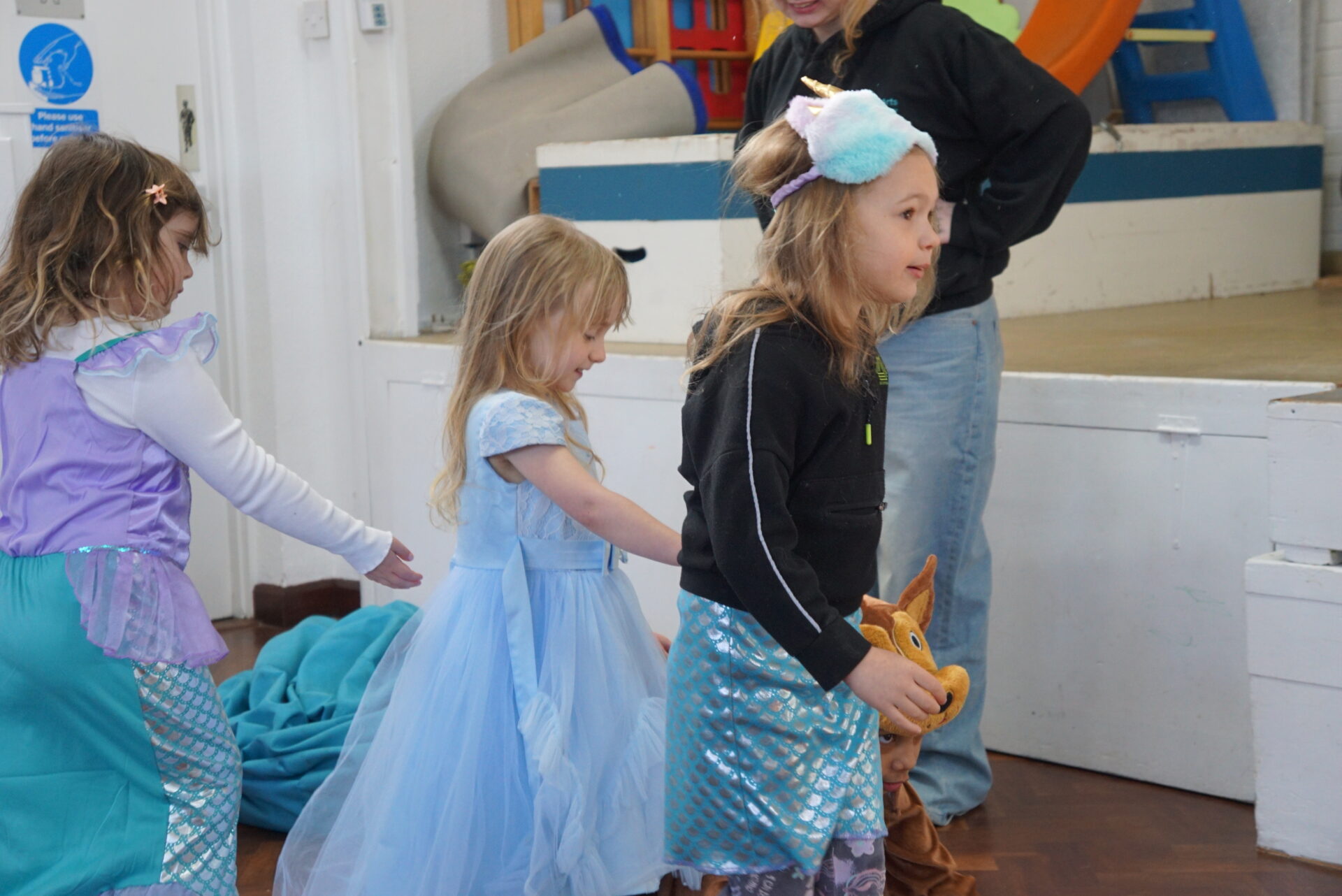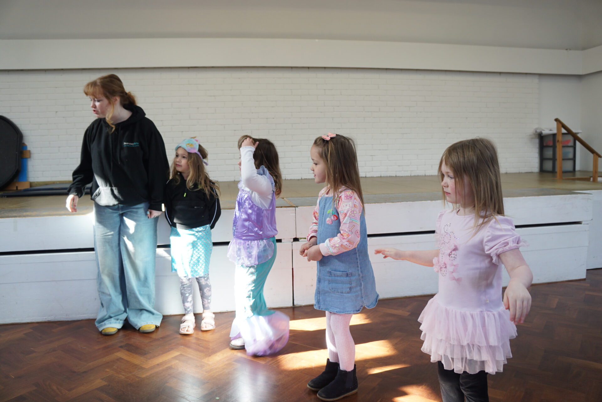 Little Doorstep put on an amazing original performance following a group of fairies, mermaids, angels and dogs that came together to save their friend princess Elsa from her entrapment. Most of these scenes were devised by the young people and their imaginations with very little input from either me or Natasha. This made the piece particularly special because I felt the group performed to the best of each of their ability because of they felt a sense of ownership and pride over the narrative they had created.